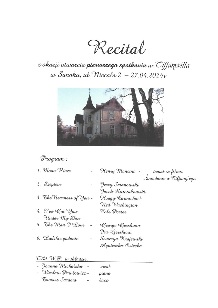 Zapraszam serdecznie na pierwsze spotkanie w Tiffanyvilla, Sanok Niecała 2