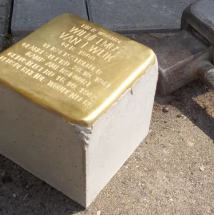 Są to mosiężne płytki o wymiarach 96x96x100mm, odlane w betonowym bloku, umieszczane przed domami, w których ofiary nazizmu dysponowały ostatnim swobodnie wybranym miejscem zamieszkania. Poprzez początkowe słowa „tu mieszkał(a)” upamiętniają prześladowane i zamordowane osoby z wszystkich grup ludności.