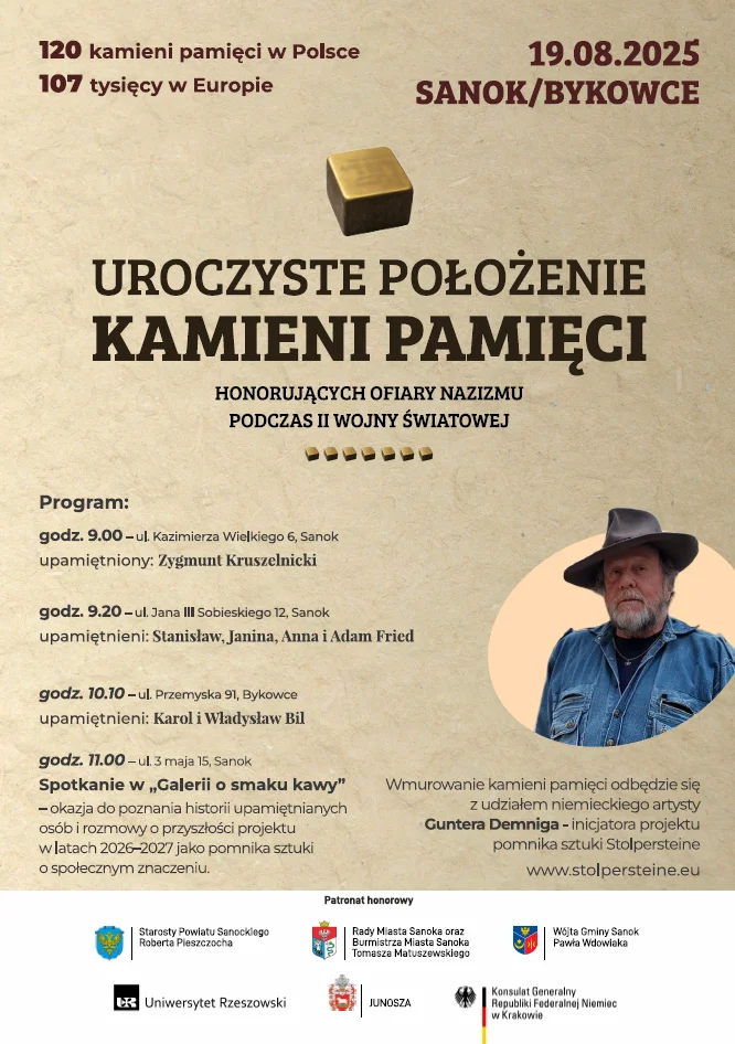 Inicjatorem ustanawiania lśniących na złoto kamieni pamięci jest niemiecki artysta Gunter Demnig, który rozpoczął realizować swój pomysł na przełomie 1992/93 r. Obecnie z twórcą współpracuje zespół trzynastu osób, gwarantując, że każdy los upamiętniany jest dokładnie zbadany i każdy kamień pamięci godnie umieszczony.